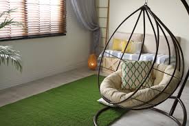 Meskipun bukan rumput asli, rumput sintetis ternyata cukup berhasil untuk ciptakan suasana lebih asri dan menyegarkan pada desain interior ruangan. Kini kamu bisa menikmati ruangan hijau menyejukan dari rumput sintetis meski memilki keterbatasan lahan untuk hadirkan taman.